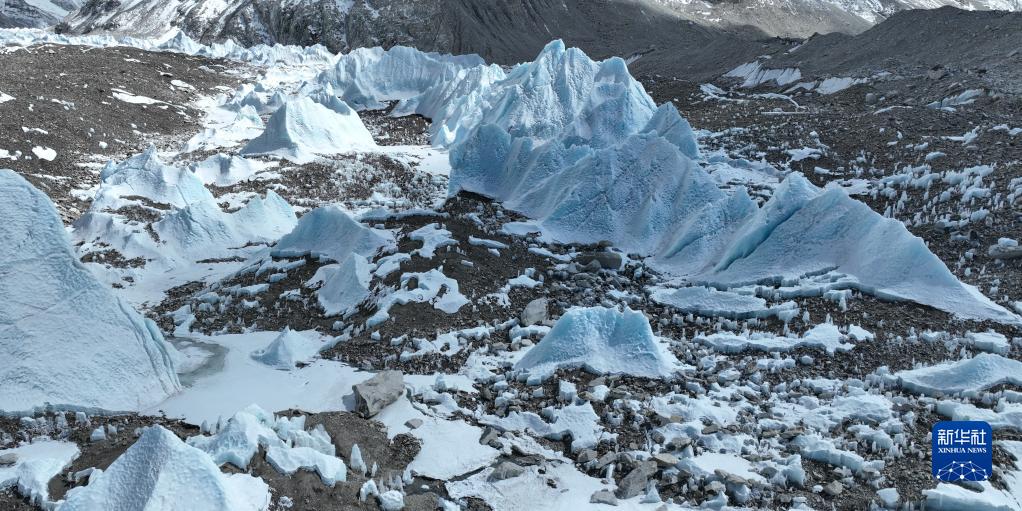 這是中絨布冰川的冰塔林(5月15日攝,無人機照片)。新華社記者 孫非 攝