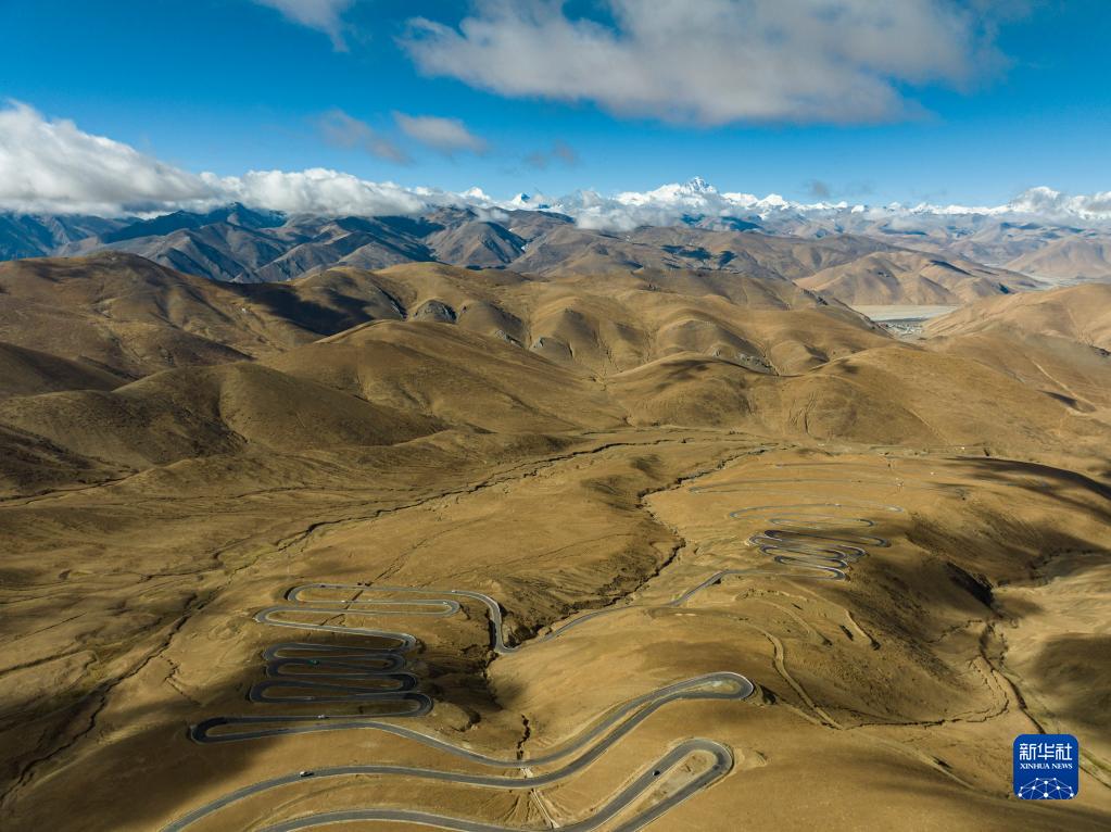 這是在海拔6000米左右高空拍攝的通往珠峰的公路(5月26日攝,無(wú)人機(jī)照片)。新華社發(fā)(旦增努布 攝)
