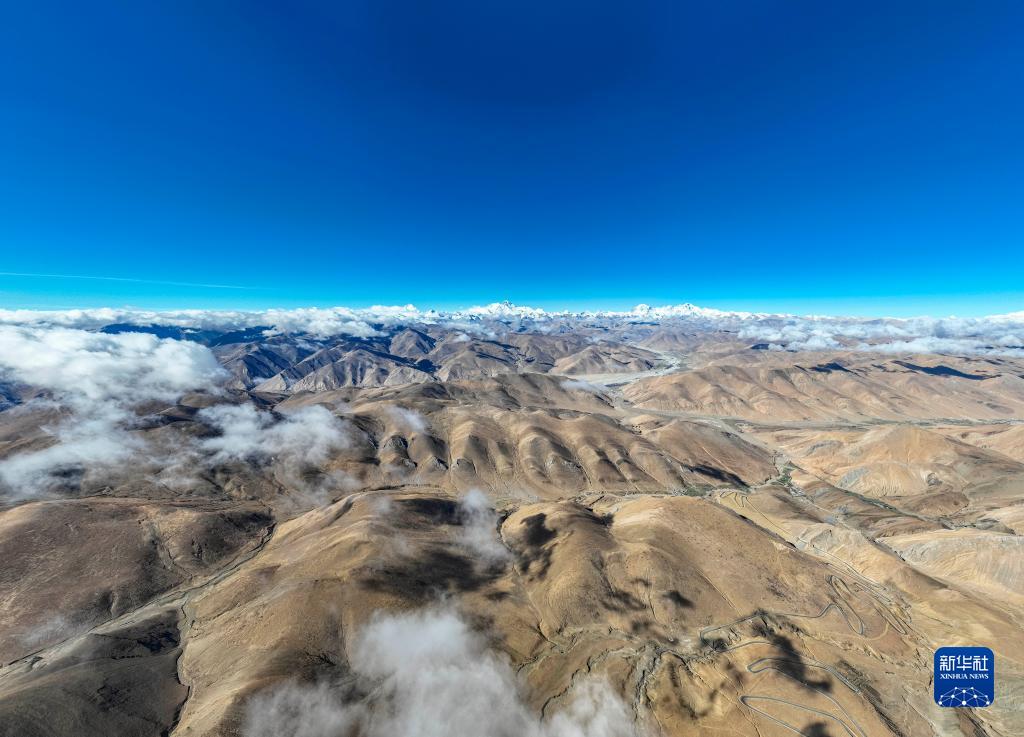 這是在海拔8000米左右高空拍攝的喜馬拉雅山脈群山(5月23日攝,無(wú)人機(jī)照片)。新華社記者 洛卓嘉措 攝