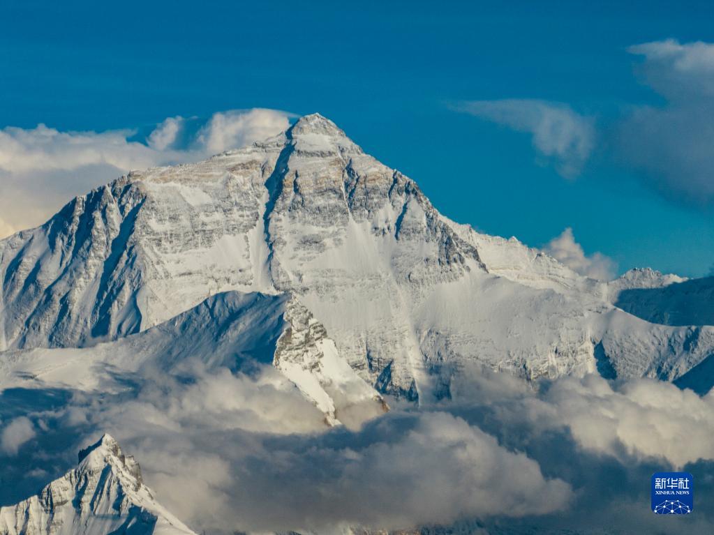 這是在海拔5700米左右空中拍攝的珠穆朗瑪峰(5月11日攝,無(wú)人機(jī)照片)。新華社記者 孫非 攝