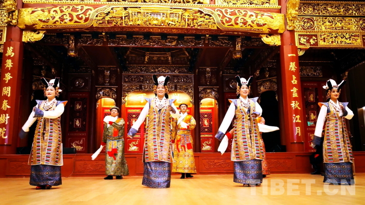 圖為拉薩市城關(guān)區(qū)娘熱民間藝術(shù)團(tuán)演員表演國(guó)家級(jí)非物質(zhì)文化遺產(chǎn)“嘎爾”攝影:劉莉