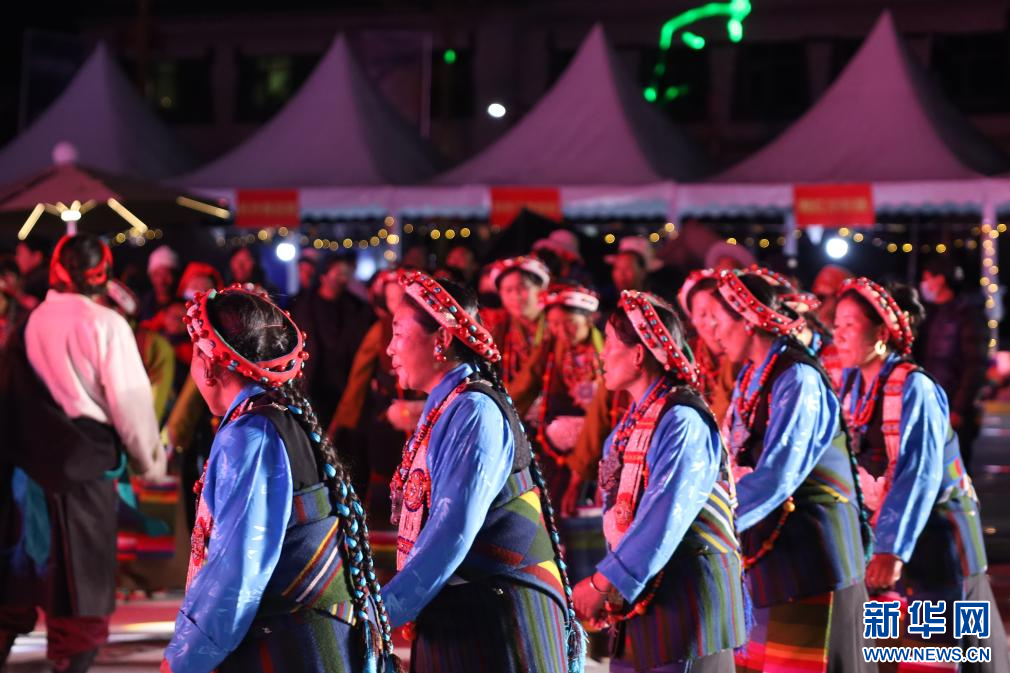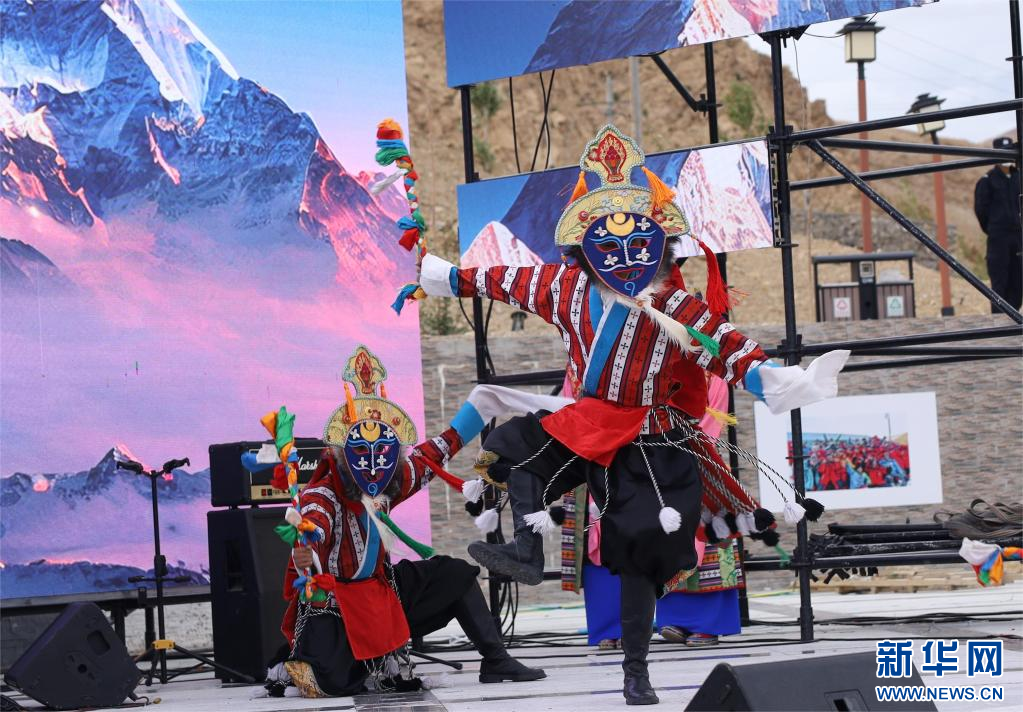 7月23日,在西藏定日2023珠峰音樂(lè)美食節(jié)現(xiàn)場(chǎng),民間藝術(shù)團(tuán)表演國(guó)家級(jí)非物質(zhì)文化遺產(chǎn)定日洛諧。新華網(wǎng)發(fā) 李騰 攝