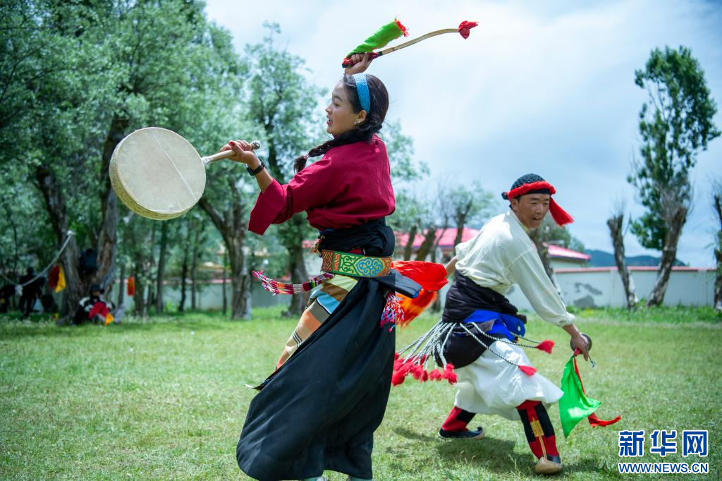 7月12日,西藏昌都市丁青縣尺犢鎮(zhèn)烏巴村文藝演出隊隊員在排練。 新華網(wǎng) 旦增努布 攝