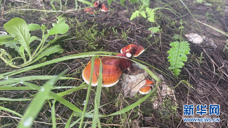 圖為紅太陽科技示范家庭農(nóng)場(chǎng)的種植棚內(nèi),仿林下野生環(huán)境種植的靈芝。新華網(wǎng) 陳穎 攝