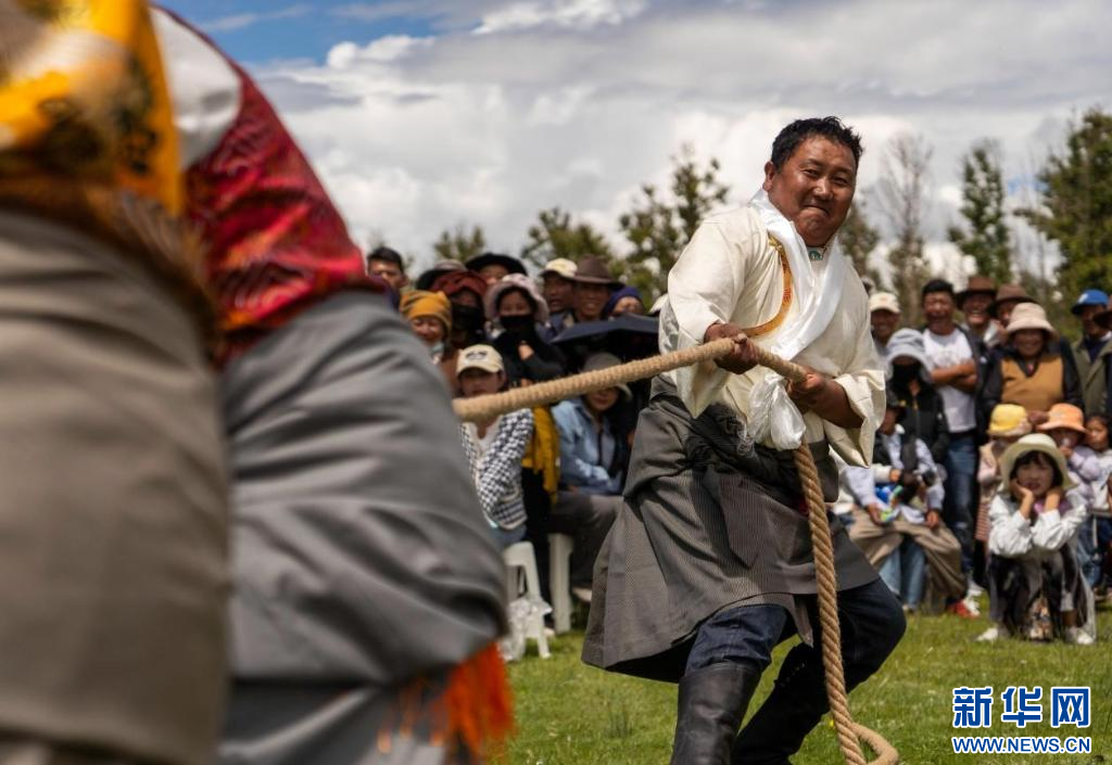圖為達(dá)孜“望果節(jié)”拔河比賽現(xiàn)場(7月28日攝)。新華網(wǎng)發(fā) 李騰 攝