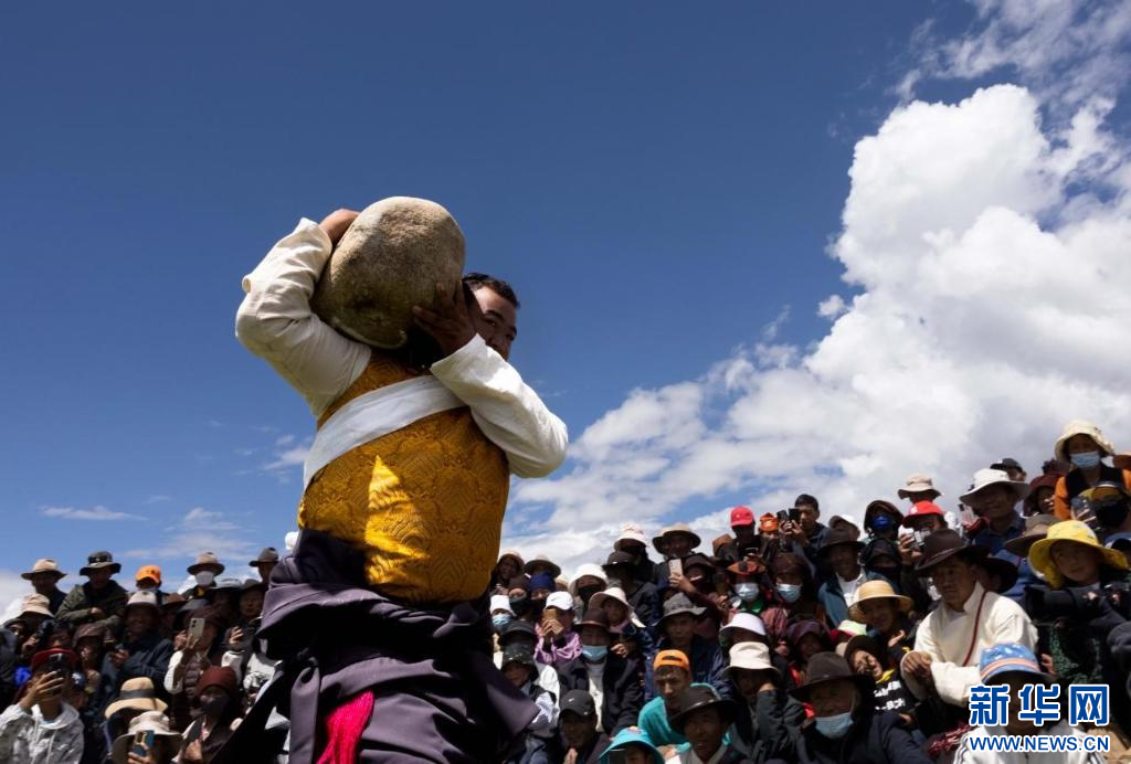 圖為達(dá)孜“望果節(jié)”抱石頭比賽現(xiàn)場(7月28日攝)。新華網(wǎng)發(fā) 李騰 攝