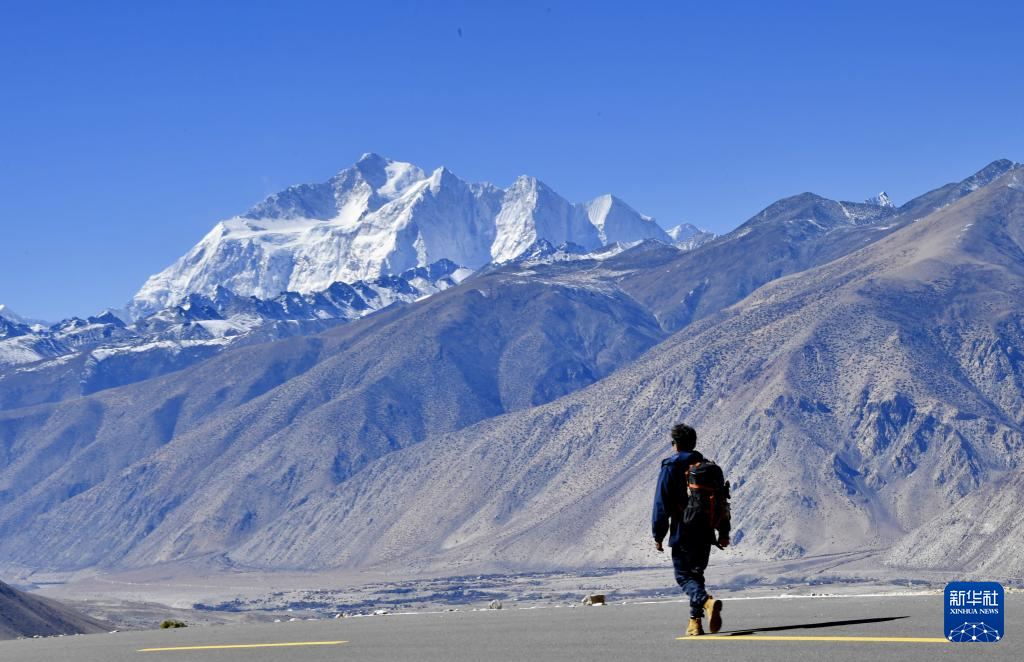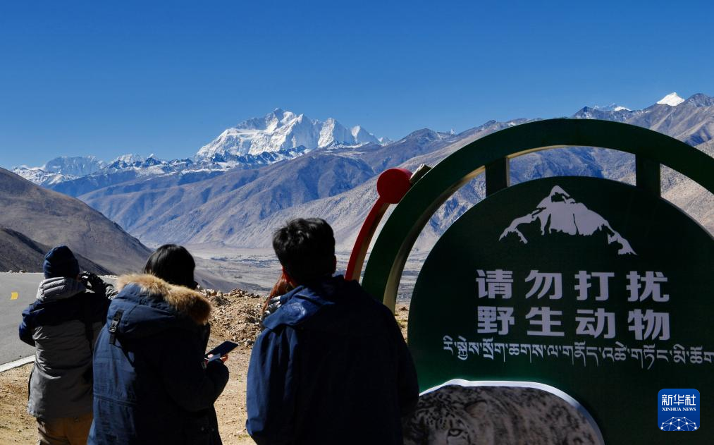 深秋,西藏日喀則市定日縣天高氣爽,游客前來觀賞世界最高峰——珠穆朗瑪峰。 ??