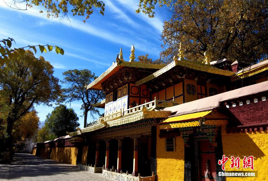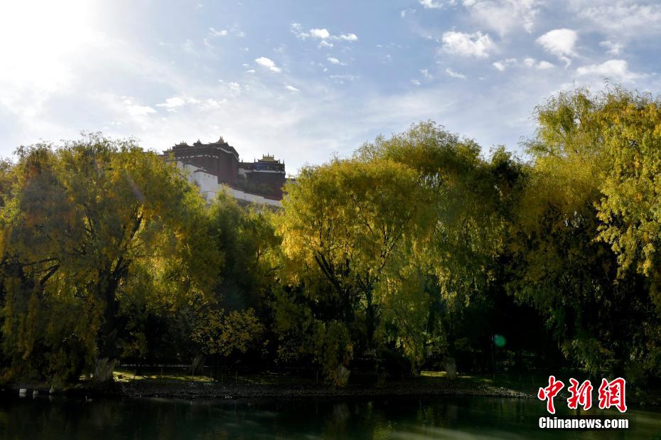 圖為初冬拉薩,羅布林卡在周圍紅黃樹葉的映襯下色彩斑斕。 李林 攝