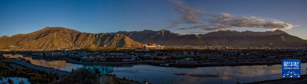 這是11月10日在南山公園拍攝的日出時(shí)分的拉薩(拼接照片)。 新華社記者 姜帆 攝