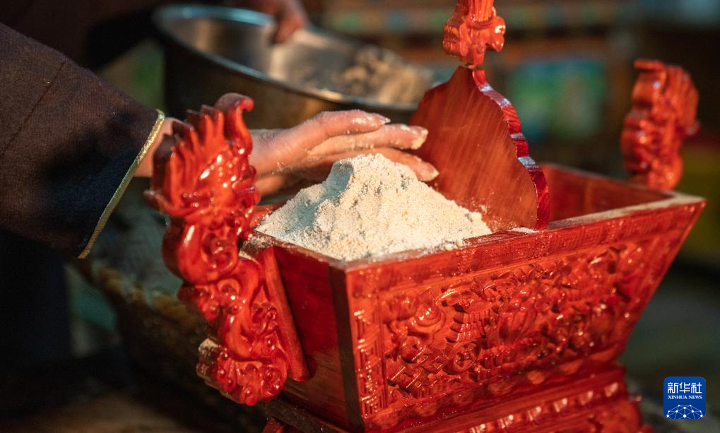 工布新年的年三十,拉巴卓瑪在準(zhǔn)備寓意五谷豐登的“切瑪”(11月13日攝)。新華社記者 丁增尼達 攝