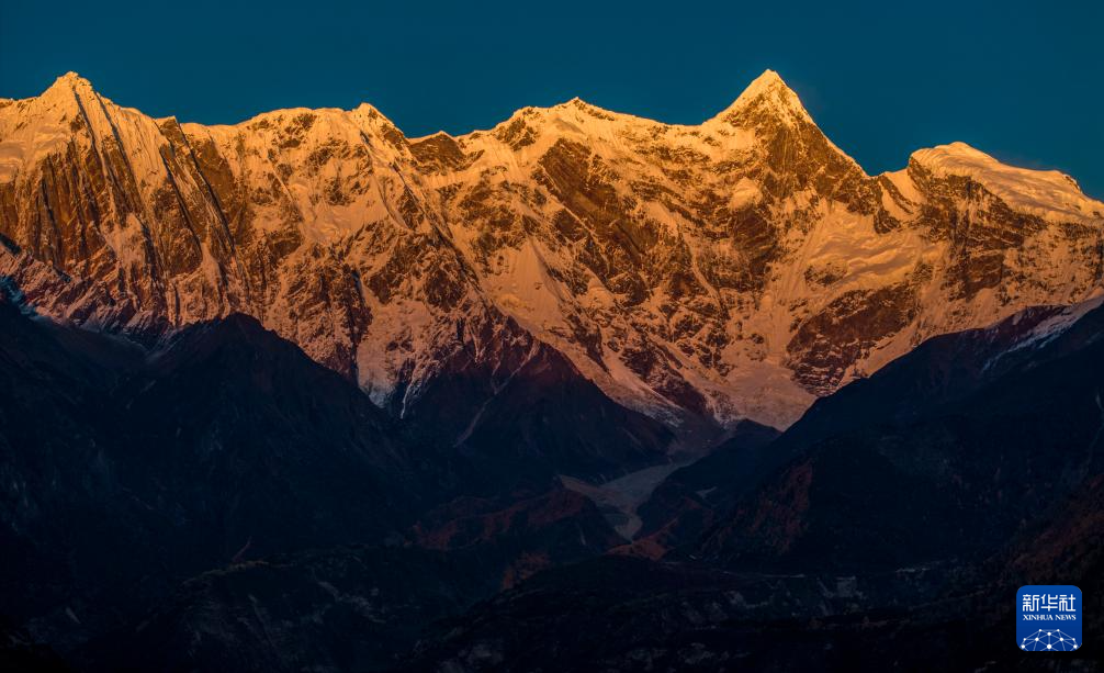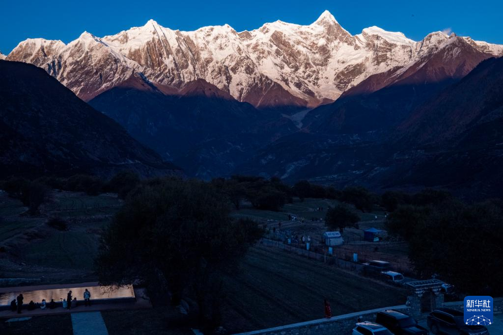 這是11月13日在索松村拍攝的日落時(shí)分的南迦巴瓦峰。新華社記者 姜帆 攝