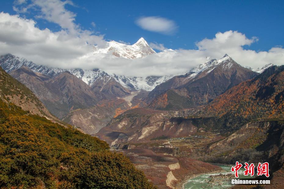 南迦巴瓦峰位于西藏自治區(qū)林芝市,海拔7782米。是西藏林芝地區(qū)最高峰,屬于喜馬拉雅山脈。南迦巴瓦峰山形獨特,因其巨大的三角形峰體終年積雪,云霧繚繞,所以也被稱為“羞女峰”。雅魯藏布大峽谷位于南迦巴瓦峰腳下,它是世界上最大、最深的峽谷。圖為11月14日,從雅魯藏布大峽谷旅游景區(qū)內觀賞南迦巴瓦峰景色。貢確 攝