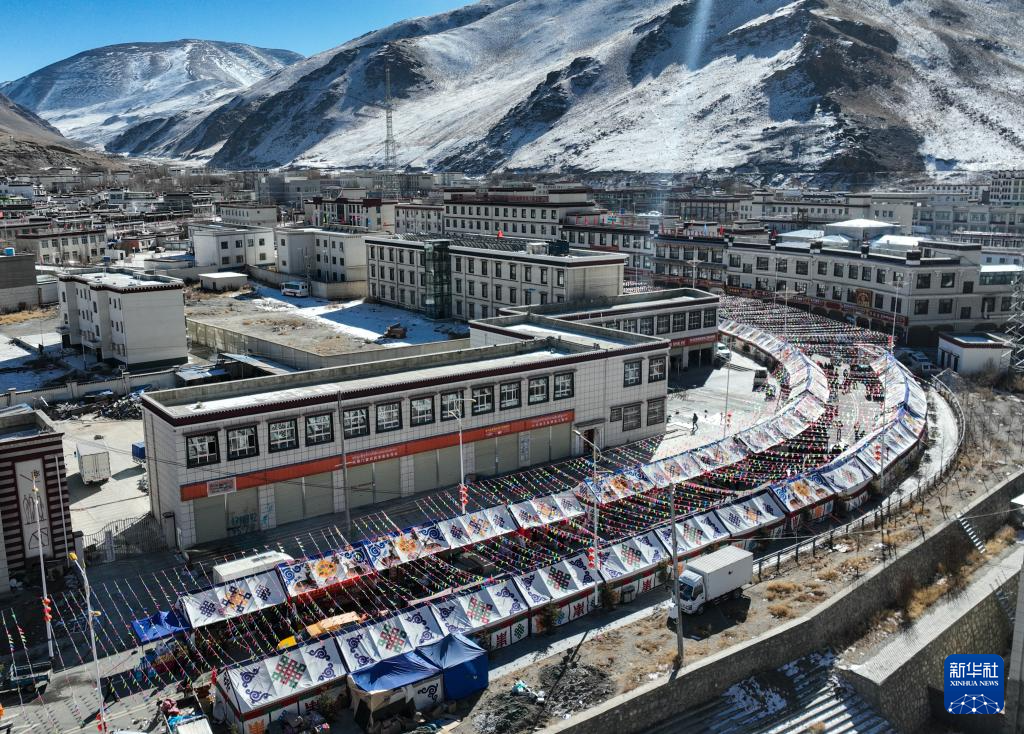 12月14日,西藏日喀則市康馬縣冬季物資文化交流會(huì)現(xiàn)場(chǎng)航拍(無人機(jī)照片)。新華社記者晉美多吉 攝