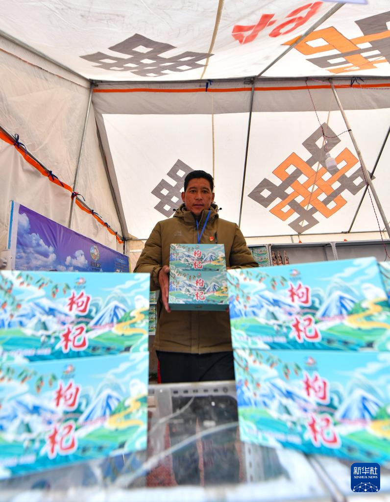 12月13日,在西藏日喀則市康馬縣冬季物資文化交流會(huì)上,涅如麥鄉(xiāng)群眾展示自產(chǎn)的枸杞。新華社記者晉美多吉 攝