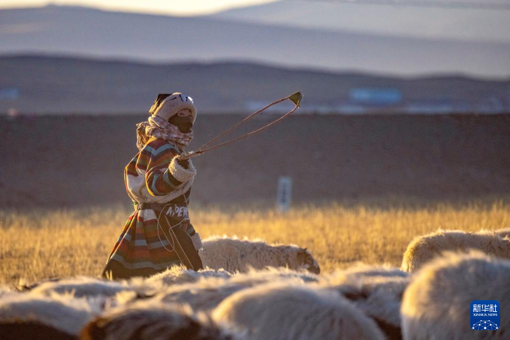 太陽落山,丹增家的羊從草場趕回棚圈(12月18日攝)。新華社記者 姜帆 攝