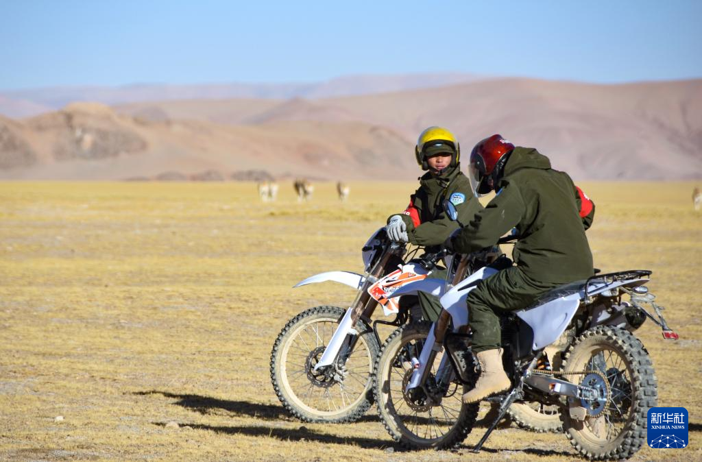 巡護隊員們騎著摩托巡護(12月17日攝)。新華社記者 劉文博 攝