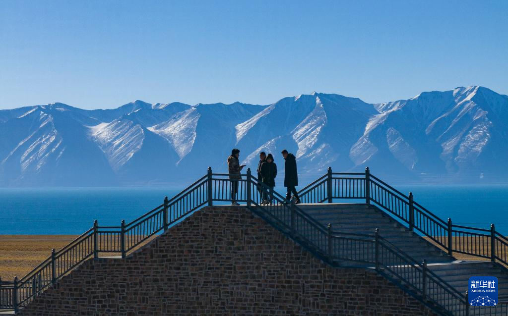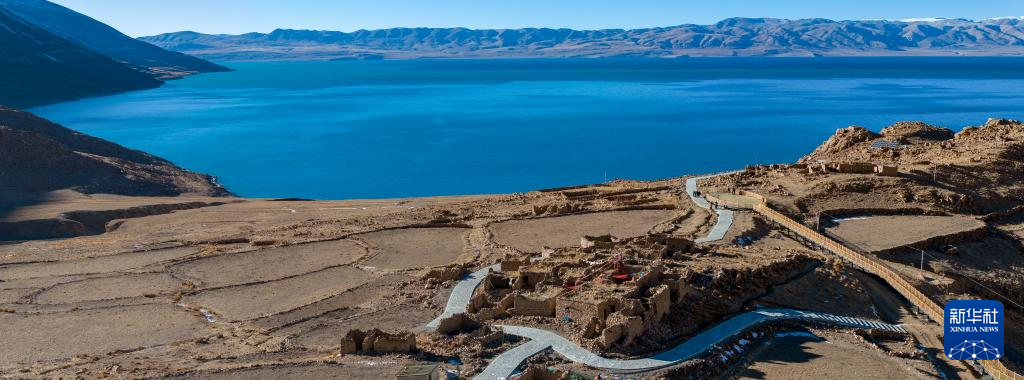 這是當(dāng)惹雍錯(cuò)旁剛剛竣工的棧道和觀景臺(tái)(無人機(jī)照片,12月20日攝)。新華社記者 格桑朗杰 攝