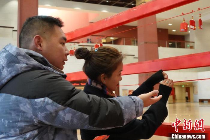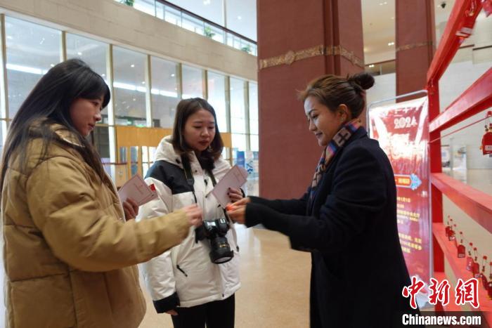 當(dāng)日上午,西藏博物館中央大廳聚集了許多參加現(xiàn)場(chǎng)活動(dòng)的游客。游客以隨機(jī)抽福袋、領(lǐng)獎(jiǎng)品的形式參與活動(dòng)。參與者紛紛表示在新年的第一天開(kāi)展這樣的活動(dòng)很有意義。針對(duì)元旦期間來(lái)館參觀的游客,西藏博物館還制作有館藏文物元素的主題紀(jì)念賀卡供游客留念。