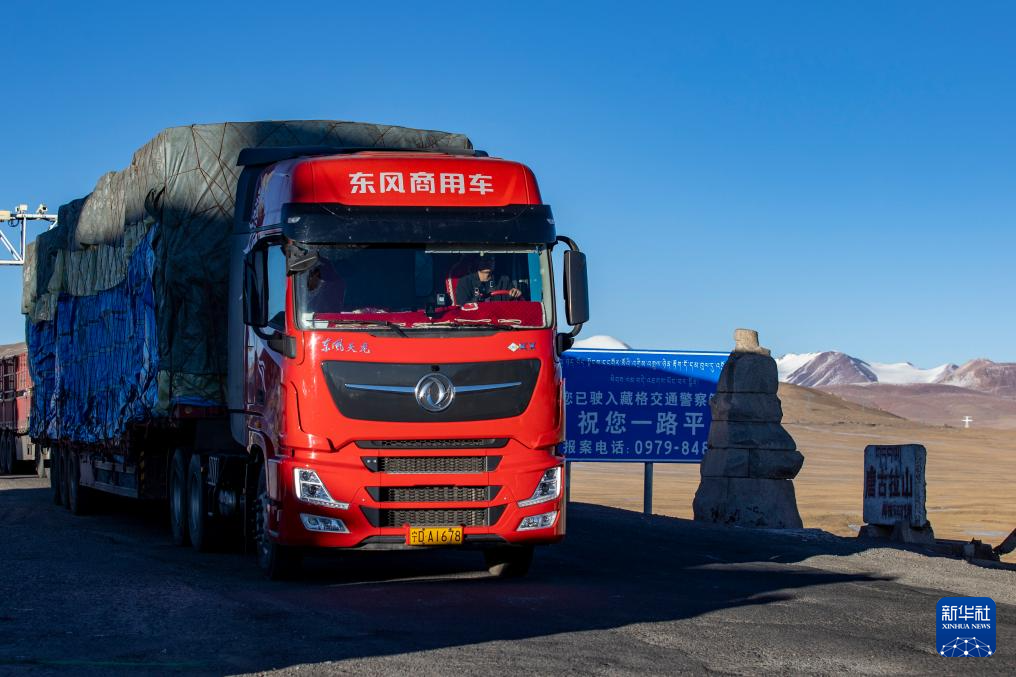 申扎縣供銷合作社從西寧采購新鮮果蔬的貨車經(jīng)過唐古拉山口(1月3日攝)。 新華社記者曹檳 攝