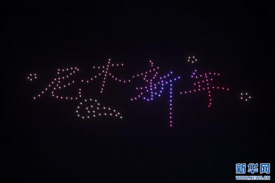 圖為1月5日無人機(jī)表演現(xiàn)場。新華網(wǎng) 旦增努布 攝