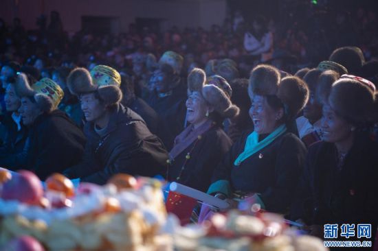 圖為1月5日晚會現(xiàn)場,觀眾被節(jié)目逗得捧腹大笑。新華網(wǎng) 旦增努布 攝