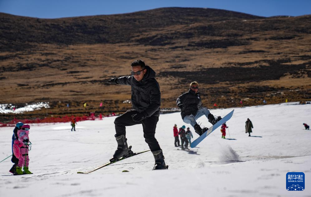 1月13日,滑雪愛好者在墨多滑雪場滑雪。新華社記者 晉美多吉 攝 ??