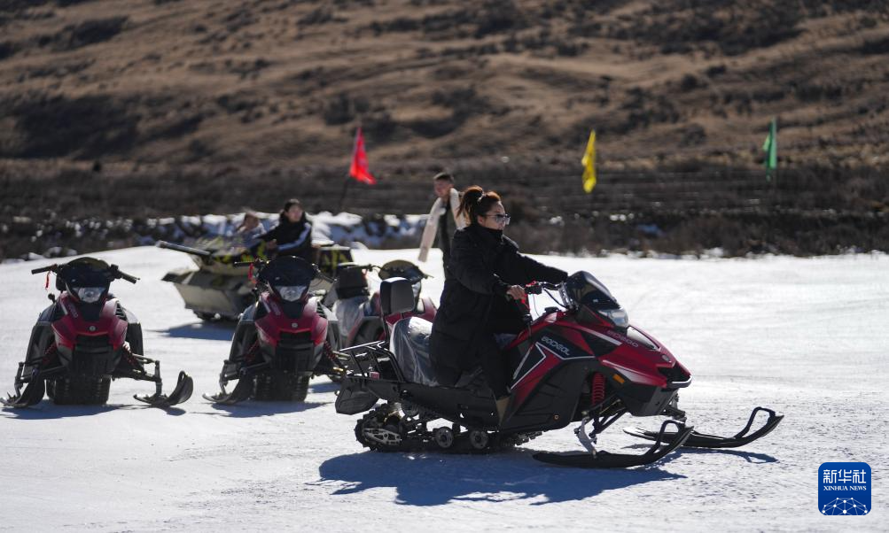 1月13日,游客在墨多滑雪場體驗雪地摩托車嬉雪項目。新華社記者 晉美多吉 攝 ??