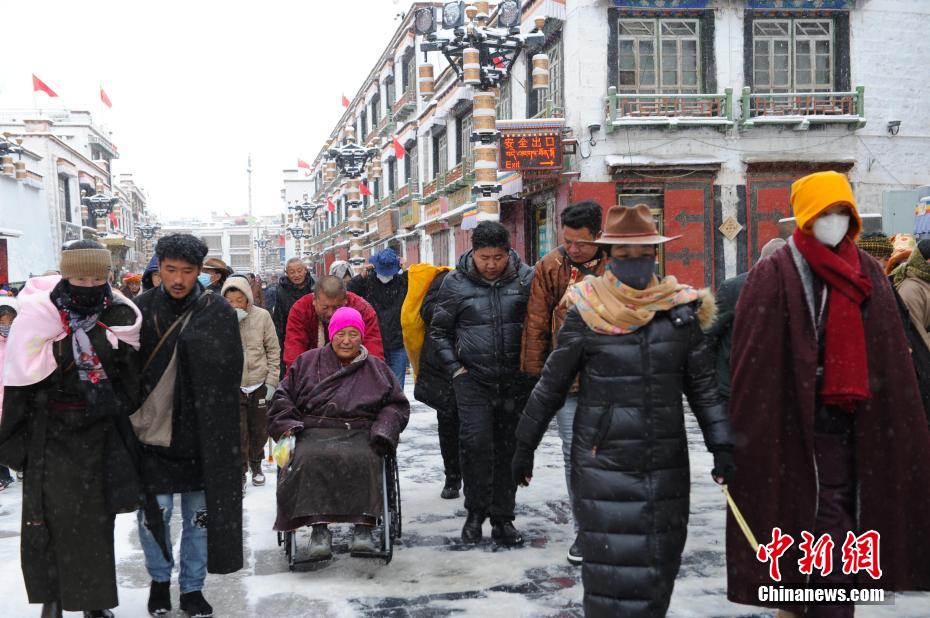 拉薩雪后信眾朝佛忙