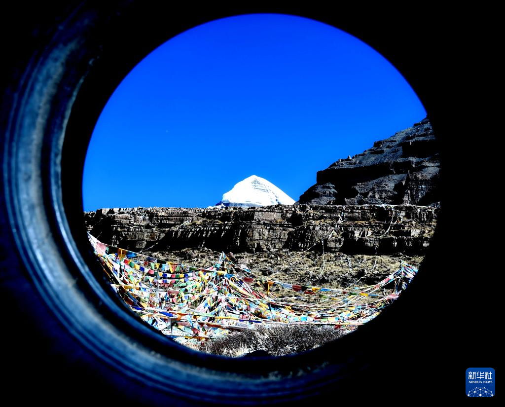 ??岡仁波齊峰與經(jīng)幡(1月30日攝)。新華社記者 關(guān)明輝 攝