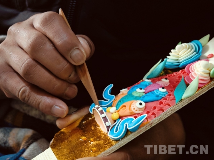 酥油花在藏語中稱為“孜扎”,是藏歷新年藏族家庭中必備的年貨之一。丹增朗杰每天和爸爸、大哥一起從早上8點(diǎn)左右開始捏制,一直持續(xù)到深夜24時(shí)許,按圖案復(fù)雜程度,一天可以捏制近7到10余對(duì)酥油花。[詳細(xì)]