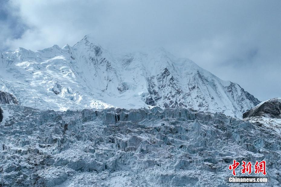 2月2日,四川省甘孜藏族自治州瀘定境內(nèi),一場雪后的貢嘎山披上了厚厚的“白紗”,在貢嘎山東坡順山而下的冰川沿海螺溝山谷綿延10多公里,就像一條“巨龍”盤在山谷中,十分壯觀。貢嘎山坐落于橫斷山系大雪山中段,主峰海拔7756米,被譽為蜀山之王。海螺溝冰川也是貢嘎山數(shù)十條冰川中規(guī)模最大、形態(tài)最美的一條。經(jīng)歷了2022年“9·5”瀘定地震后,海螺溝景區(qū)道路等重建工作完成,步游道、旅游服務設施升級,游客逐步回升。航拍鏡頭下的海螺溝冰川粒雪盆下端的“冰川冰”。記者 劉忠俊 攝