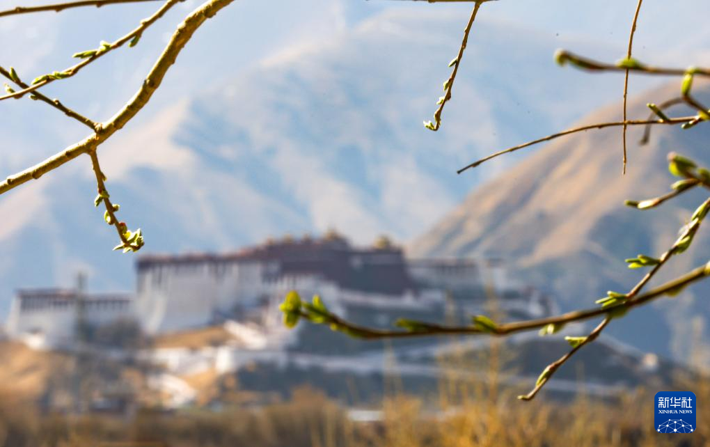 3月14日從拉薩市宗角祿康公園拍攝的春日布達(dá)拉宮一角。新華社記者 丁增尼達(dá) 攝