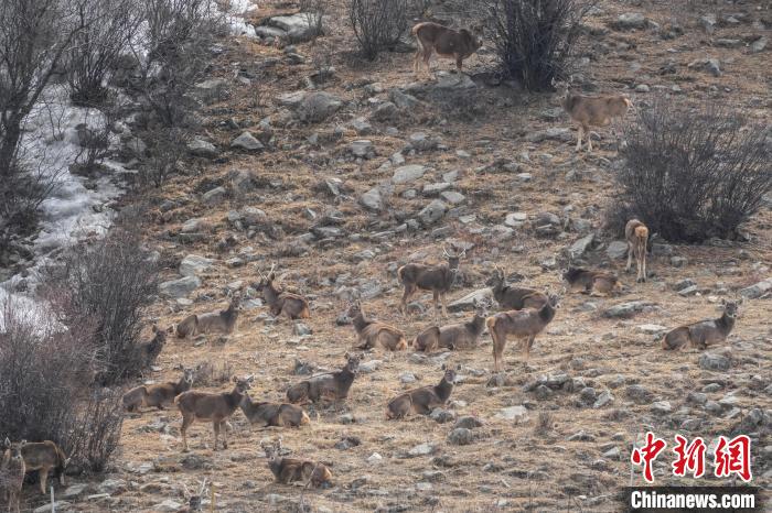 圖為林周縣境內的白唇鹿。貢嘎來松 攝