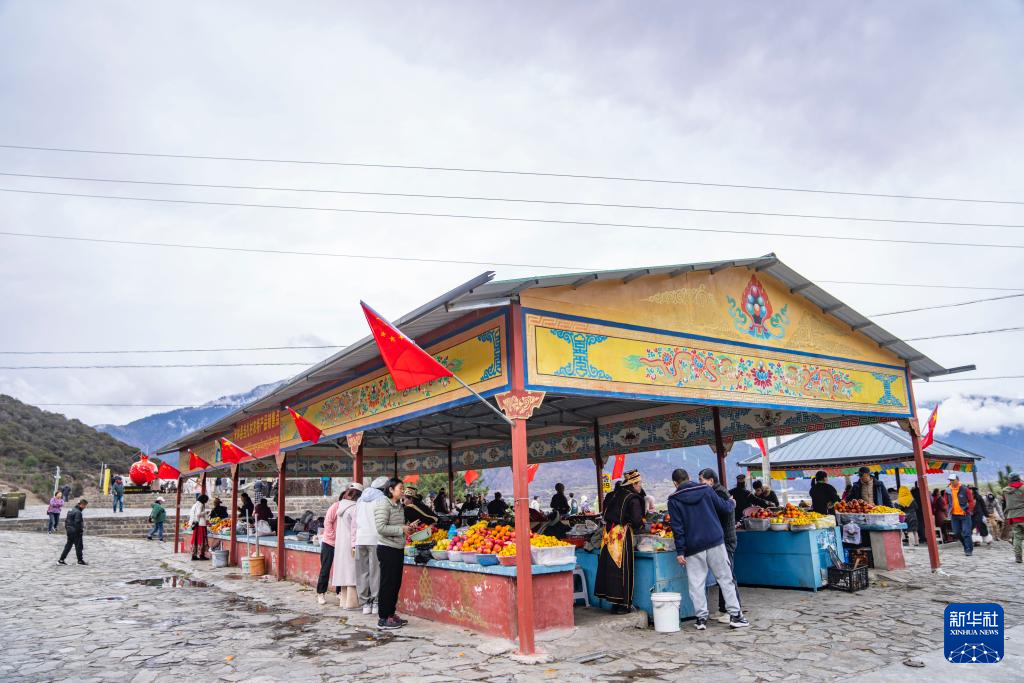 沿著219國道途經(jīng)西藏林芝米林市羌納鄉(xiāng)羌渡崗村時,尼洋河與雅魯藏布江交匯的壯美景觀令人駐足,成為許多游客的打卡點(diǎn)。勤勞的羌渡崗村婦女們,在這里擺起水果攤,還賣起了甜茶、青稞餅,吸引了眾多遠(yuǎn)道而來的游客。