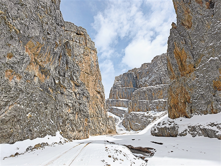 經(jīng)雜榮嘎峽谷,兩山相崟十余里,一峽一水一條路一線天;翻瑪欽拉山口,單堆碎石覆碎雪,古道千里,行人了無痕;過巴青本塔鄉(xiāng),折向東楞木拉,過山進溝又見奇峰巉巖、怪石嶙峋。