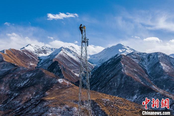 2023年11月30日,西藏索縣榮布至丁青縣巴達(dá)35千伏線路工程施工人員正在開展塔上作業(yè)。趙清鵬 攝