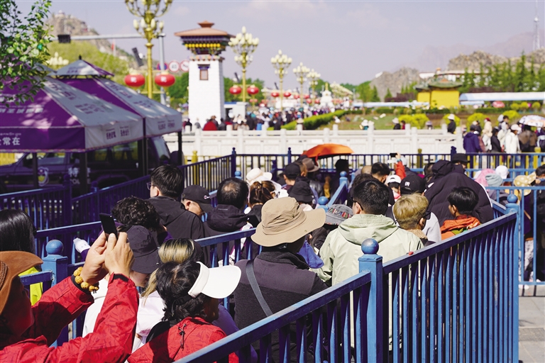 “你喜歡‘特種兵式旅游’還是‘城市漫游’呢?”面對記者的問題,身著民族服飾正在拍照的伍女士回答:“我本人更喜歡‘城市漫游’,畢竟年紀大了。‘特種兵式旅游’太累了,可能不適合我?!蔽榕縼碜运拇?,今年53歲,喜歡旅行的她經(jīng)常約著好朋友四處走走。“這次進藏,我們打算就在拉薩待著,逛逛拉薩的大街小巷、博物館、夜市。了解一座城市的文化、歷史,比匆忙的旅行更有趣?!?/p>