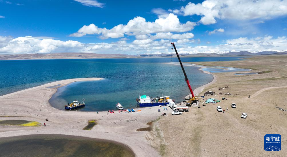 鉆探技術(shù)人員架設(shè)湖泊鉆探平臺(6月1日攝)。新華社記者 晉美多吉 攝