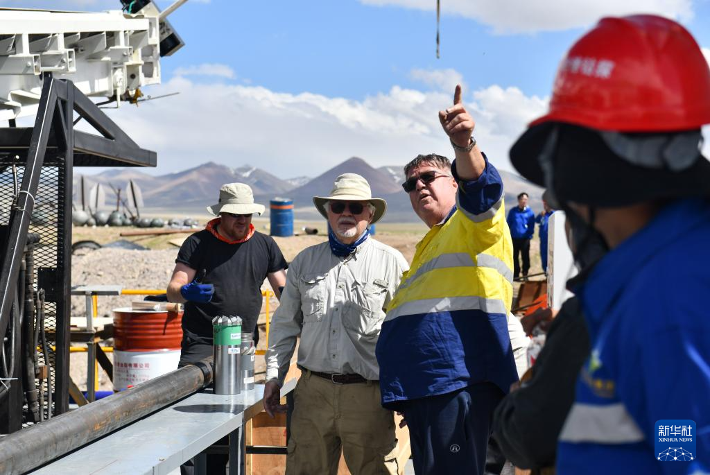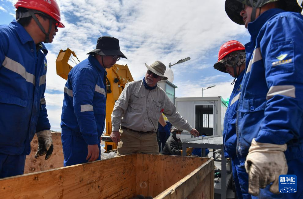 中外技術(shù)人員在架設(shè)湖泊鉆探平臺(6月1日攝)。新華社記者 晉美多吉 攝