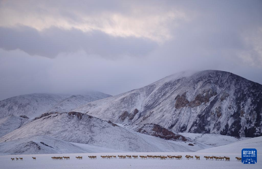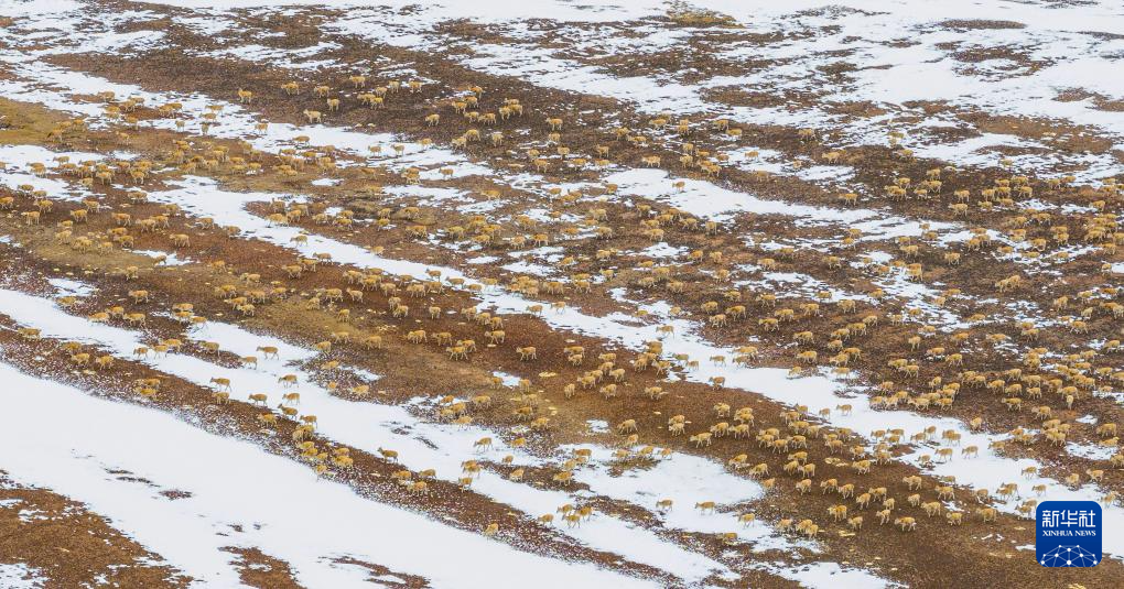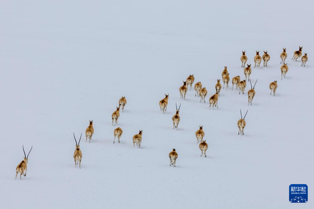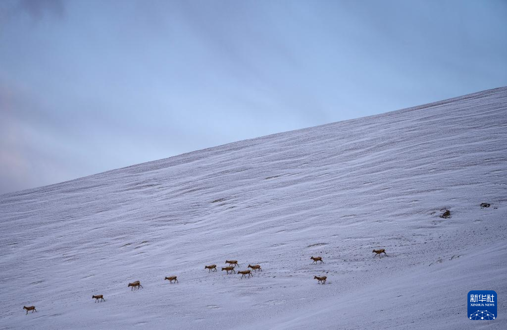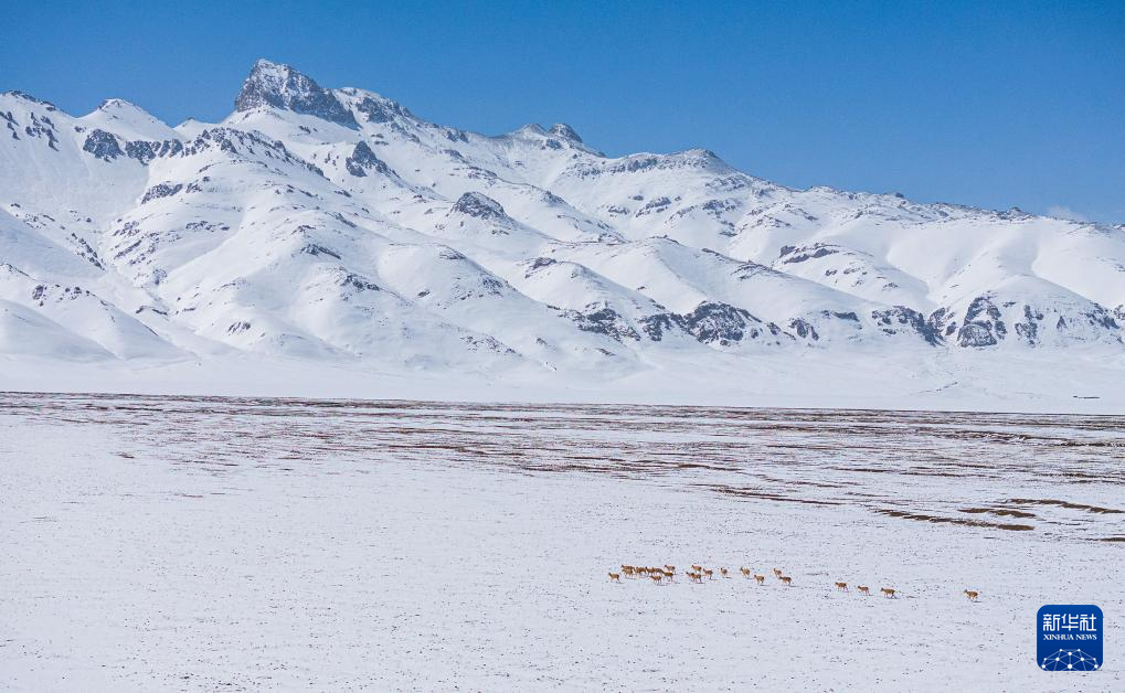 這是雪地中遷徙的藏羚羊(5月8日攝)。新華社記者 丁增尼達 攝