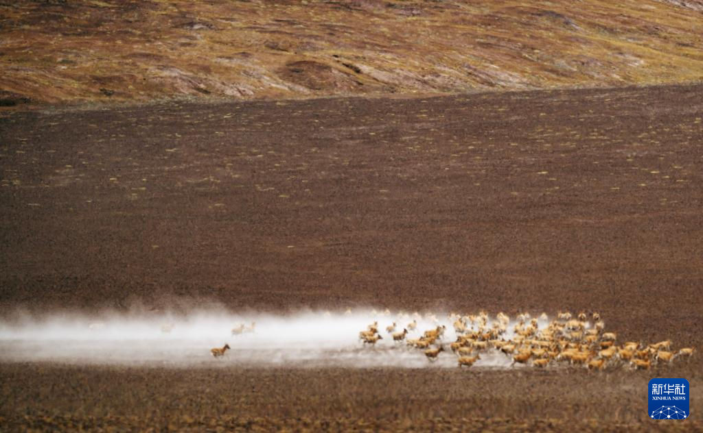 遷徙途中的藏羚羊(6月14日攝)。新華社記者 旦增尼瑪曲珠 攝