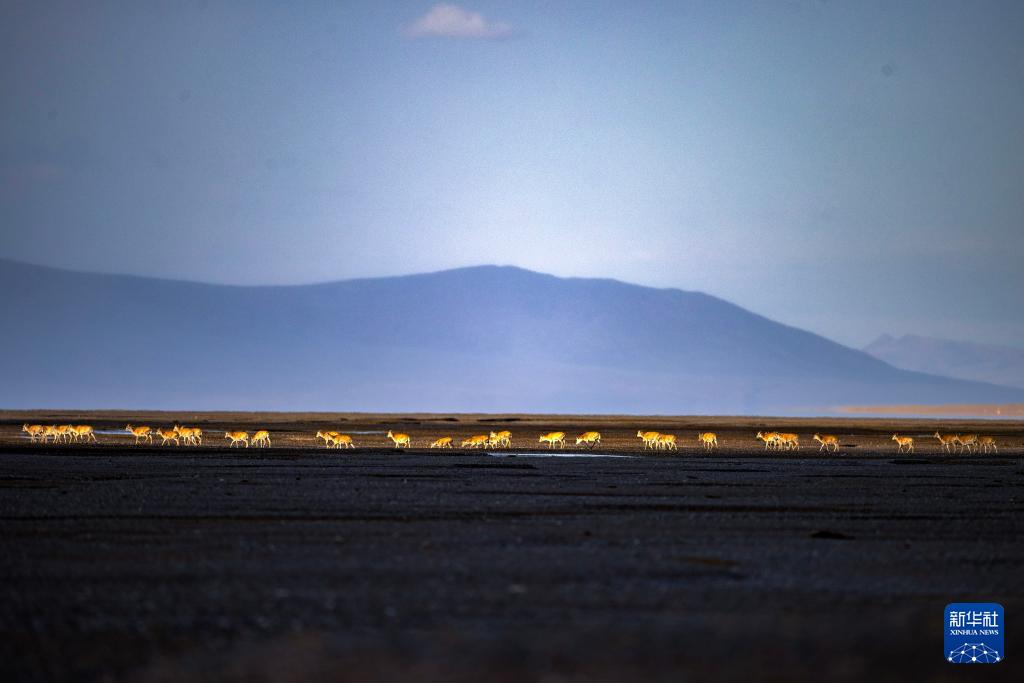 6月13日傍晚,在羌塘國家級自然保護區(qū),一群藏羚羊在遷徙中。新華社記者 費茂華 攝