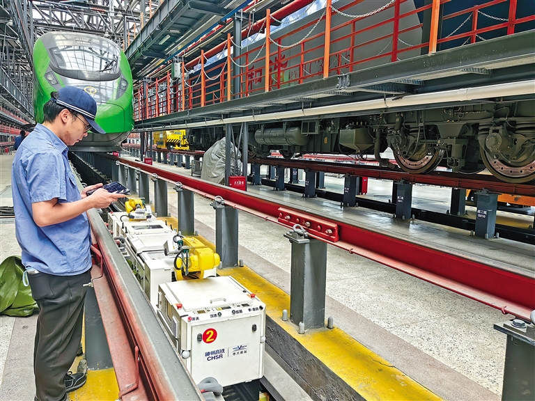 中國鐵路青藏集團有限公司格爾木機務段拉薩機輛整備中心動集檢修庫是動車檢修基地,擔負著動車組的日常檢修、定期修及專項修任務。在暑運客流高峰期間,三組動車組全部上線運行,該段加大對動車組入庫檢修整備力度,采用智能檢測機器人對高原動集軌旁、車底部進行自動檢測、分析及診斷,并對相關部位零部件外觀故障進行識別和報警,實現(xiàn)了“人檢”向“機檢”的轉(zhuǎn)變。