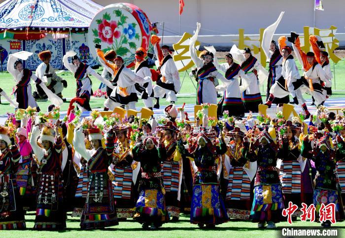 8月10日,2024年那曲恰青賽馬節(jié)暨第三屆“鄉(xiāng)村振興 那曲奮進(jìn)”活動(dòng)開(kāi)幕式在那曲市賽馬場(chǎng)舉行,精彩的文藝歌舞、馬術(shù)表演等展示著羌塘草原上的無(wú)窮魅力和活力。圖為開(kāi)幕式文藝表演現(xiàn)場(chǎng)。中新社記者 李林 攝