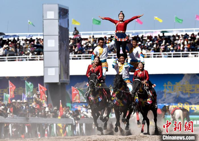 8月10日,2024年那曲恰青賽馬節(jié)暨第三屆“鄉(xiāng)村振興 那曲奮進(jìn)”活動(dòng)開(kāi)幕式在那曲市賽馬場(chǎng)舉行,精彩的文藝歌舞、馬術(shù)表演等展示著羌塘草原上的無(wú)窮魅力和活力。圖為開(kāi)幕式上的馬術(shù)表演。中新社記者 李林 攝