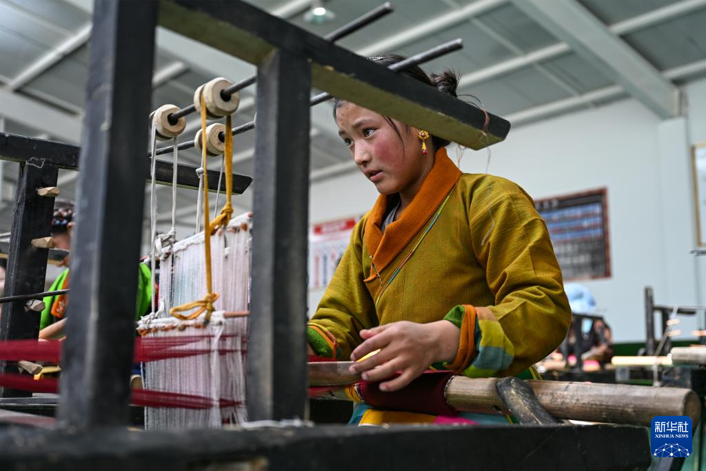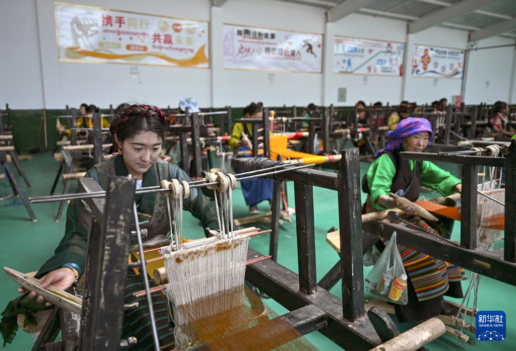 9月1日,在西藏日喀則市仁布縣特色產(chǎn)業(yè)孵化園,亞德細(xì)褐羊毛織品農(nóng)民專業(yè)合作社工作人員在車間里織布。新華社記者 孫瑞博 攝 ??