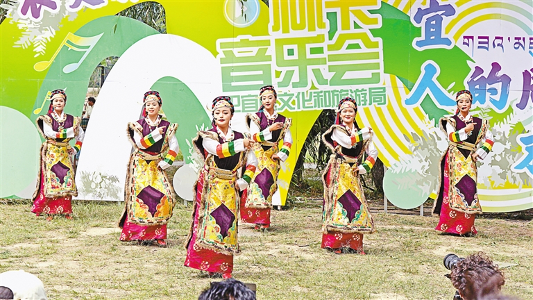 圖為在尼洋河畔濱江公園舉行的林卡主題音樂會(huì)演出現(xiàn)場(chǎng)。