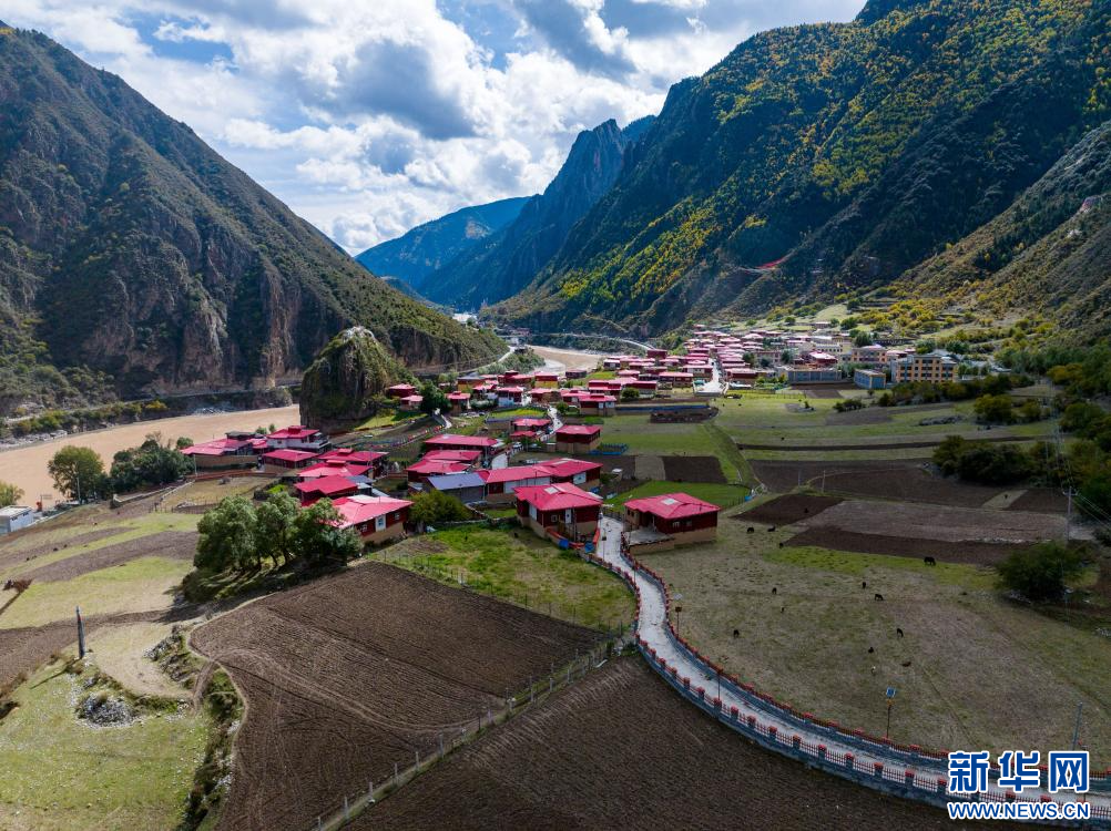 10月21日拍攝的“西藏解放第一村”昌都市江達縣崗托村村貌(無人機照片)。新華網(wǎng) 旦增努布 攝