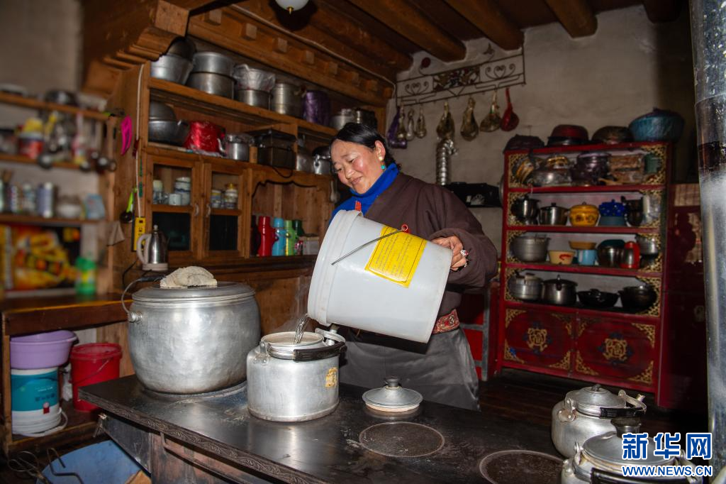 10月19日,昌都市卡若區(qū)妥壩鄉(xiāng)熱霍村村民白瑪拉姆在家里準備燒水。新華網(wǎng) 旦增努布 攝