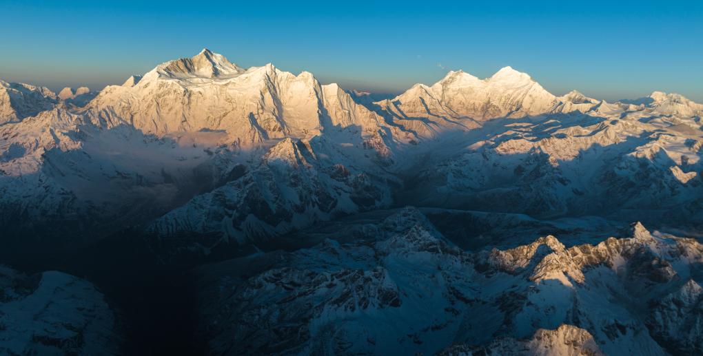 這是晨光照耀下的喜馬拉雅山脈一隅(4月17日攝,無(wú)人機(jī)照片)。新華社記者 丁增尼達(dá) 攝 ??